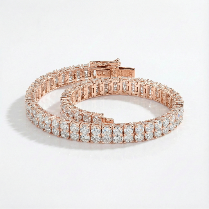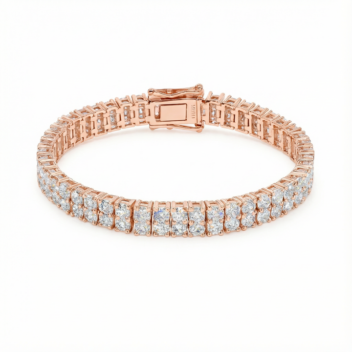 A bold, high-luxury statement piece featuring two full rows of dazzling 3mm premium moissanite. Built for maximum brilliance and an unmistakably elevated presence — this bracelet reflects light from every angle and sits with perfect structure on the wrist. A modern icon for those who want a powerful, unforgettable shine.