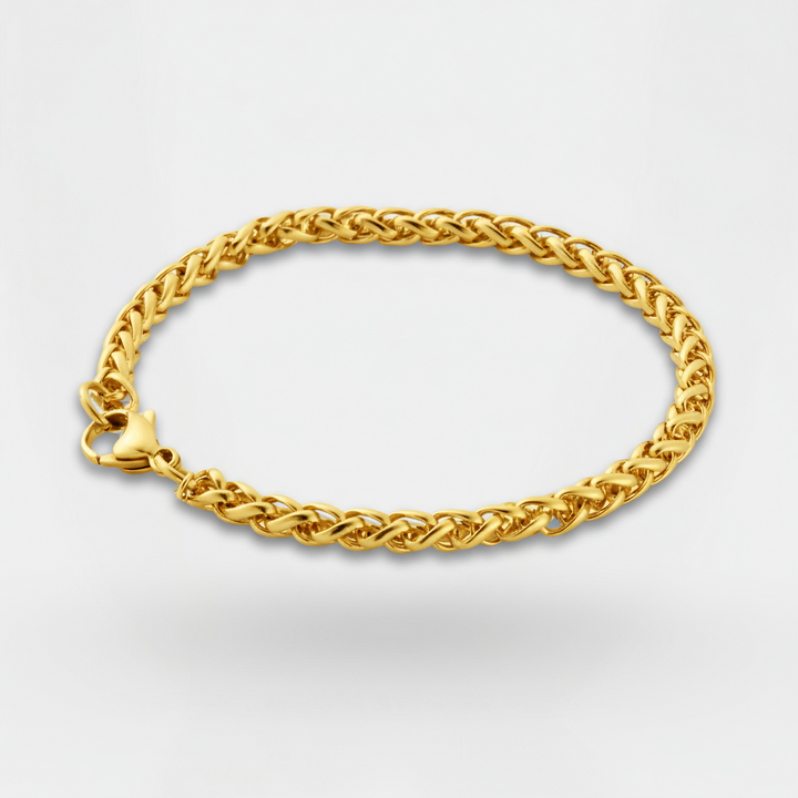 Wheat Bracelet 5MM – GoldWheat Bracelet 5MM – GoldWheat Bracelet 5MM – GoldWheat Bracelet 5MM – GoldBlack Zenora jewelry box and drawstring bag on a light gray background