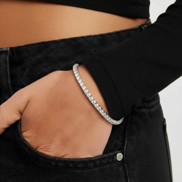 צמיד הטניס הקלאסי והאהוב – עשוי מכסף סטרלינג 925 טהור בציפוי רודיום,