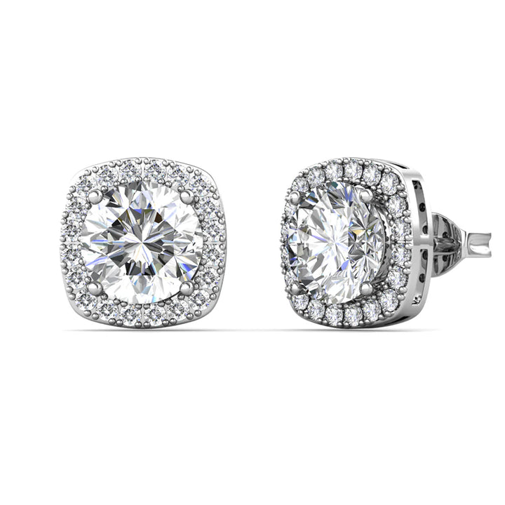 ומשובצים בשתי אבני מוסונייט מרכזיות של קראט אחד כל אחת, מוקפות בהילה עדינה של אבני מוסונייט קטנות במשקל כולל של 0.16 קראט.