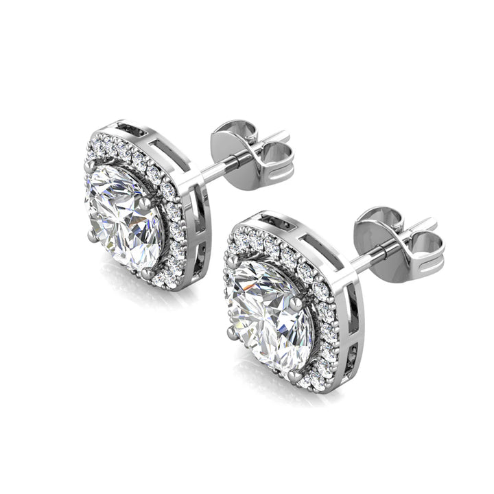 חומרים: בסיס: כסף סטרלינג 925 | ציפוי: זהב לבן איכותי | אבנים: מוסונייט VVS1, צבע D | משקל כולל: 2.32 קראט (1 קראט מרכזי + 0.16 קראט אבני מסגרת לכל עגיל)