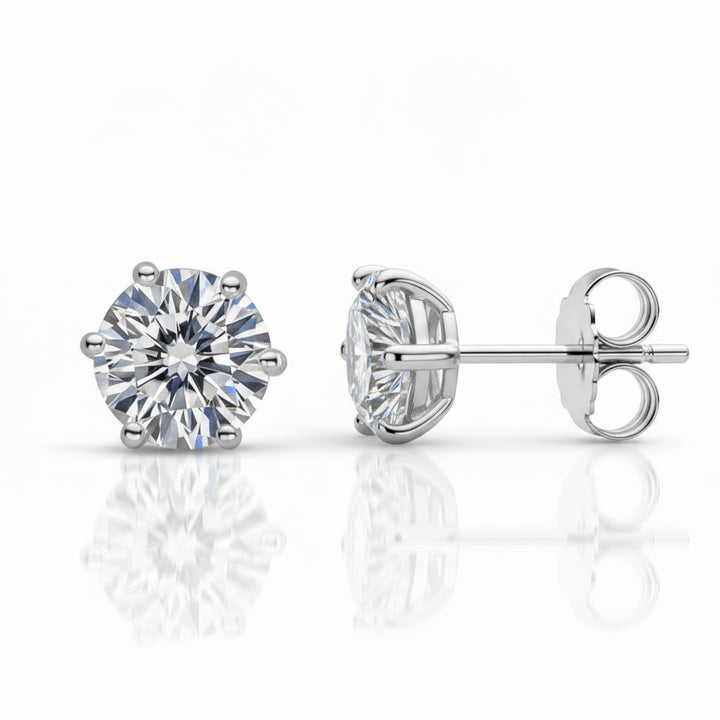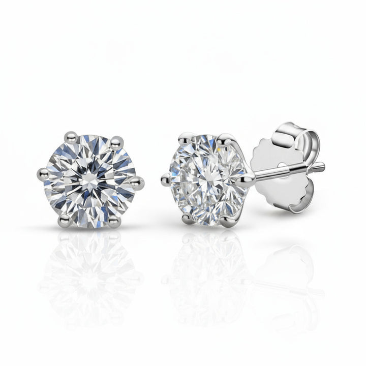 חומרים: בסיס: כסף סטרלינג 925 | ציפוי: זהב לבן איכותי | אבנים: מוסונייט VVS1, צבע D | משקל כולל: 2 קראט (1 קראט כל אחת)