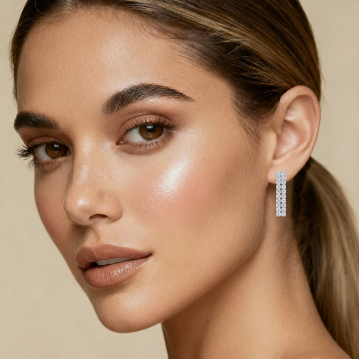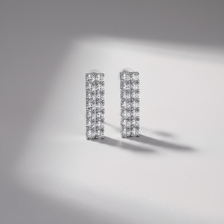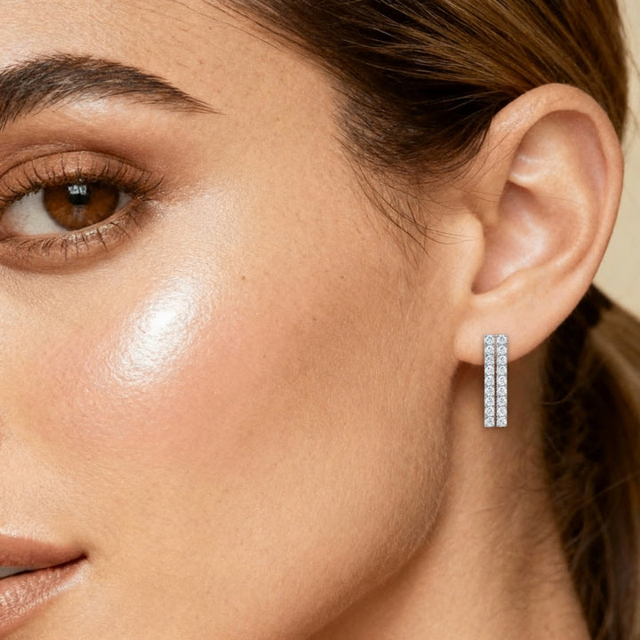 ומשובצים באבני מוסונייט נוצצות במשקל כולל של 4 קראט בעיצוב קווי ומדויק.