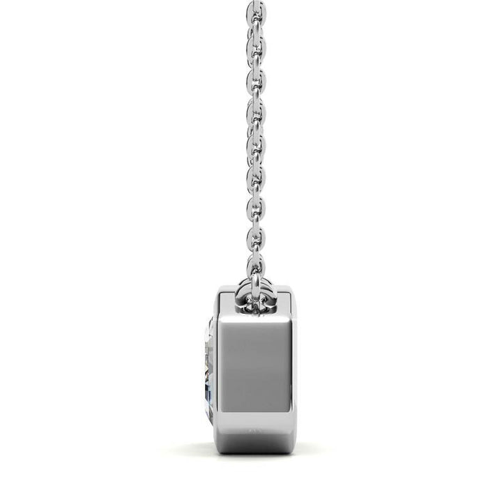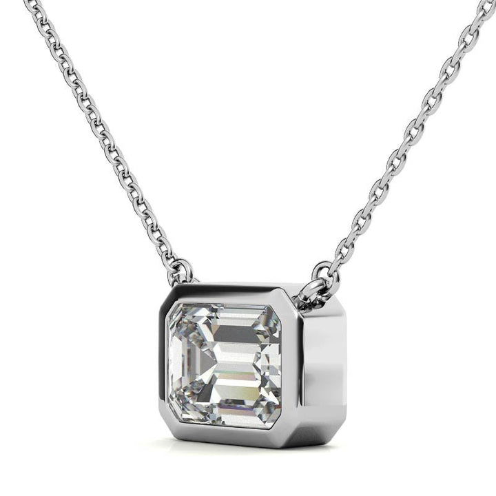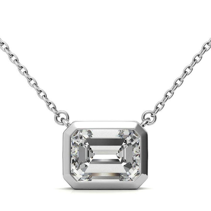 שרשרת Bezel Emerald מציגה אבן מואסנייט איכותית בדרגת VVS, בליטוש Emerald אופקי במסגרת יוקרתית בסגנון Bezel.