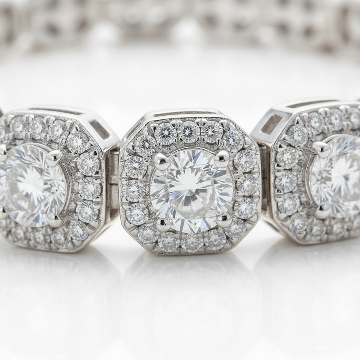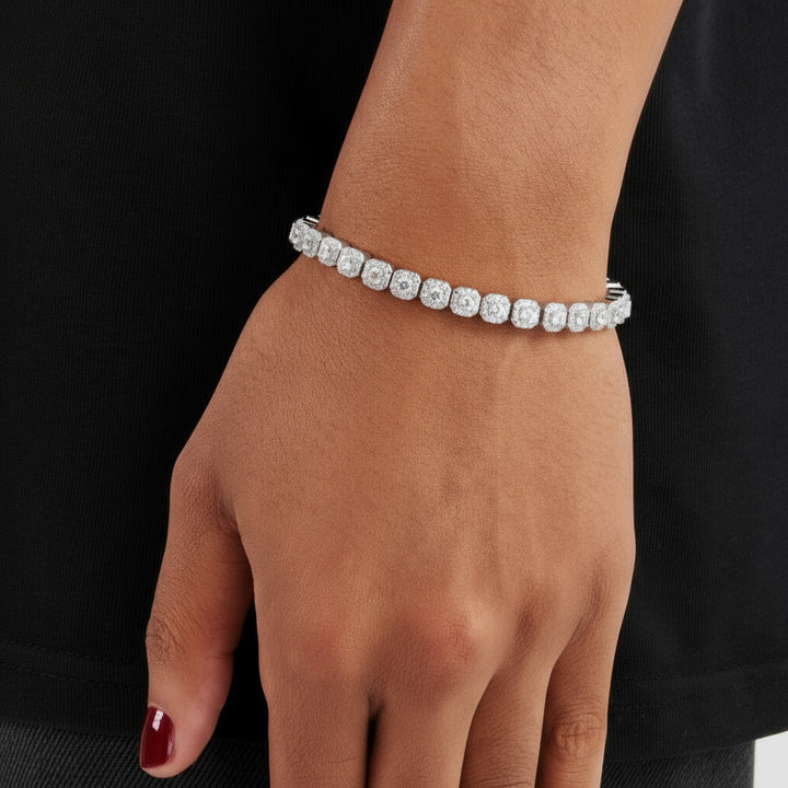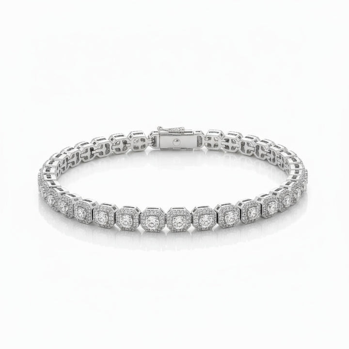 כל אבן מואסנייט באיכות VVS D משובצת בקפידה ליצירת קו מושלם של ברק בעובי 5 מ״מ – תכשיט שנועד לאנשים המשדרים ביטחון שקט וסטייל ללא מאמץ.