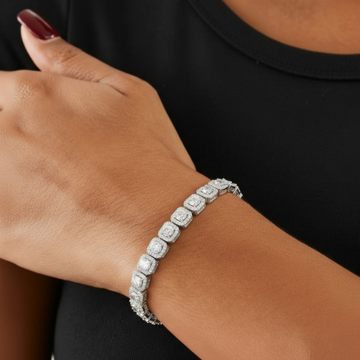 צמיד Celeste בגרסת הזהב הלבן משלב יוקרה נקייה עם זוהר שמימי ייחודי.