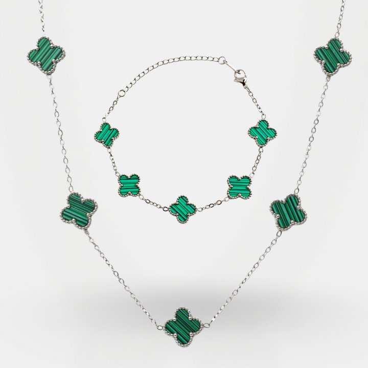 סט תלתן כסף - ירוק מלאכיט