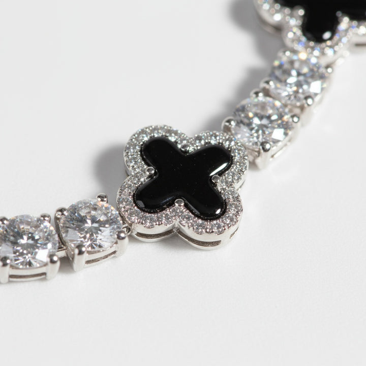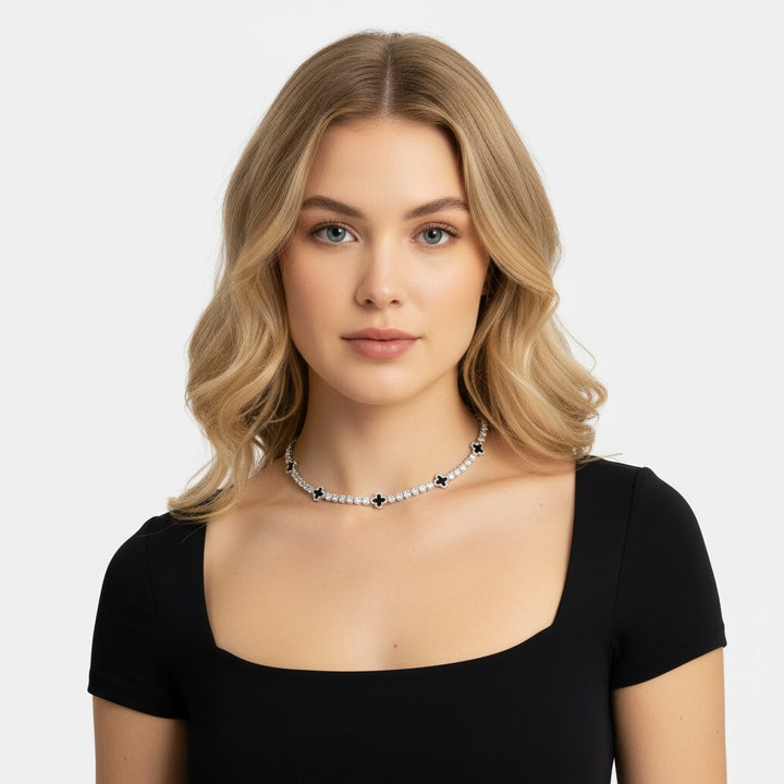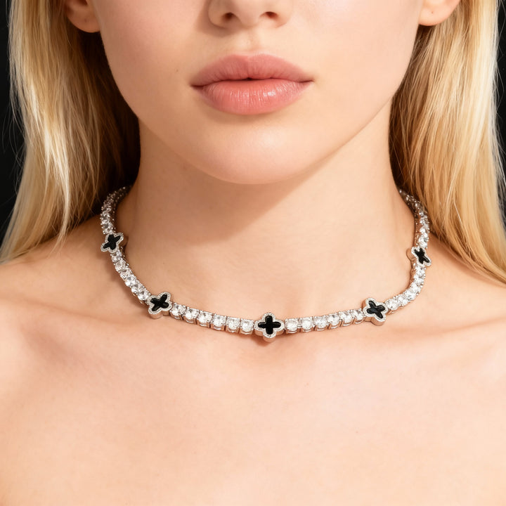 עשוי כסף סטרלינג 925 בציפוי זהב לבן 14 קראט, הקולייר Éclipse מגלם ניגודיות והרמוניה אלגנטית.