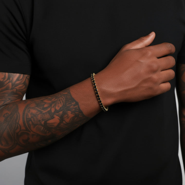 צמיד אבני טניס ONYXGold bracelet with black beads on a light gray backgroundצמיד אבני טניס ONYXH534199dde7f148d4b6d1c39ffc969303L.jpgBlack Zenora jewelry box and drawstring bag on a light gray background