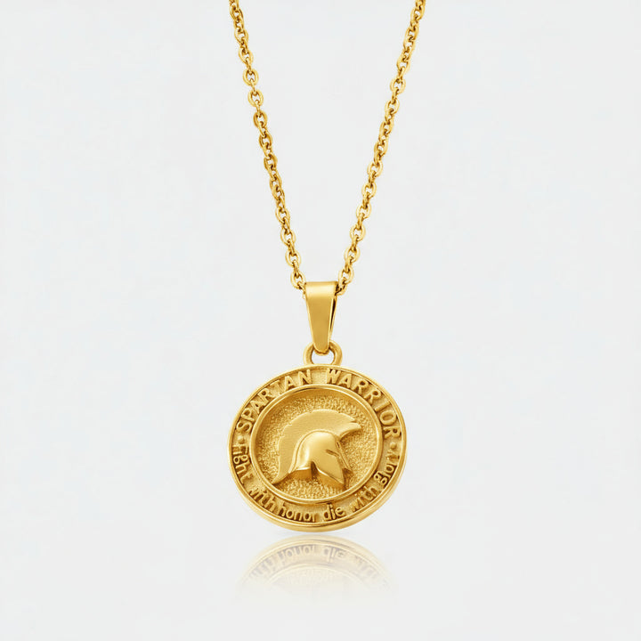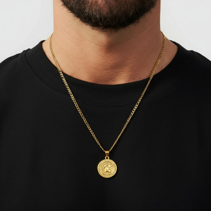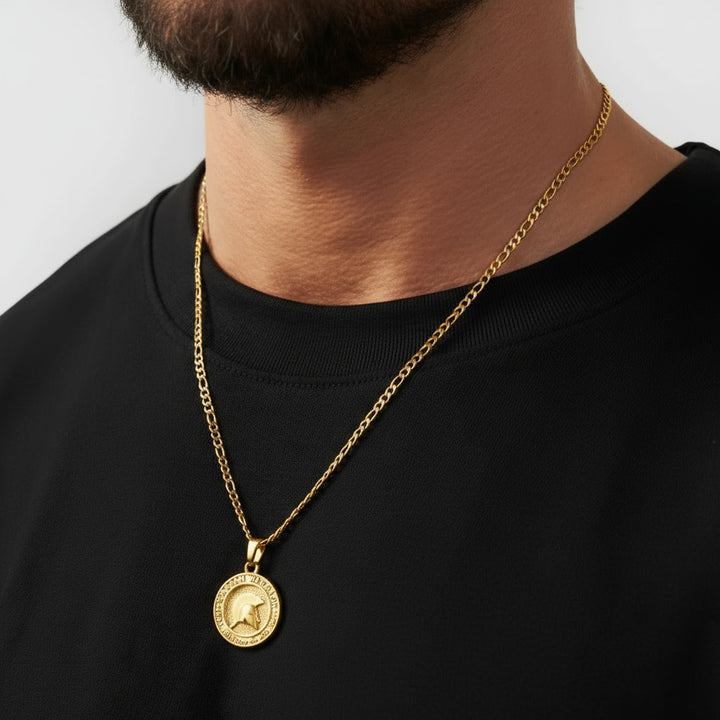 תליון ספרטן – זהבתליון ספרטן – זהבתליון ספרטן – זהבGold necklace with a Spartan warrior pendant on a white backgroundBlack Zenora jewelry box and drawstring bag on a light gray background