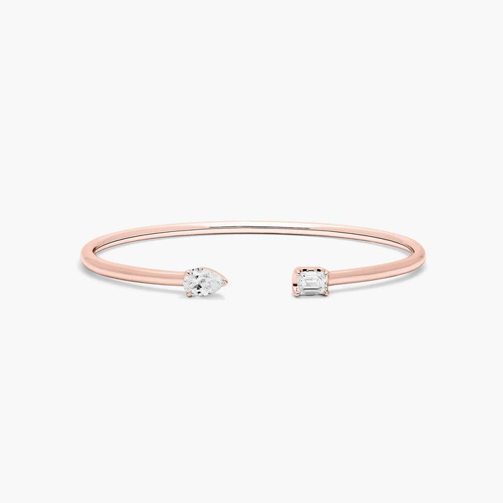 The Noga Bangle balances two iconic cuts — pear and emerald — set on a sleek 18K Rose gold-plated band. Minimal, elegant, and effortlessly luxurious, it’s the perfect everyday bracelet with a premium glow.