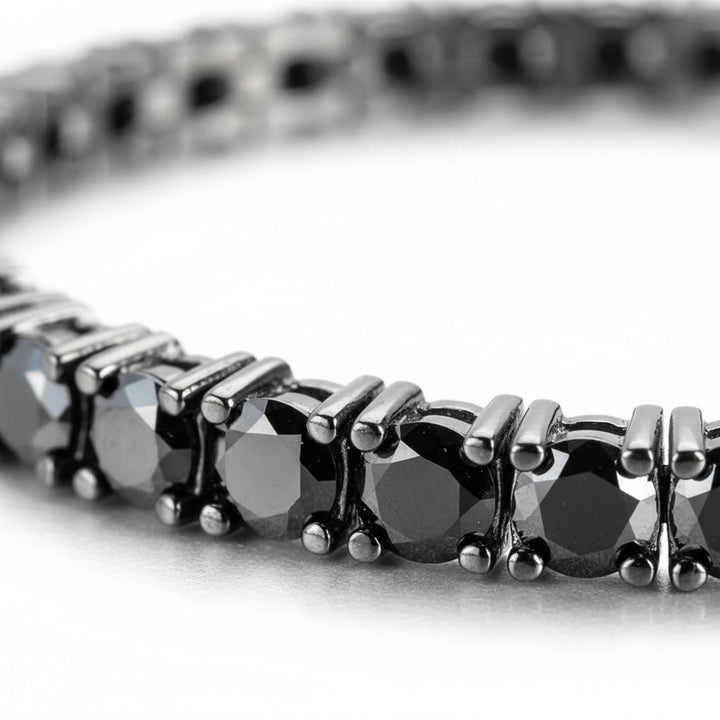 The Onyx Bracelet captures refined strength through its flawless line of VVS D Black Moissanite stones, hand-set on 925 Sterling Silver with a multi-layer black rhodium finish for enduring shine and depth.